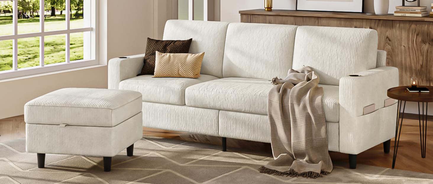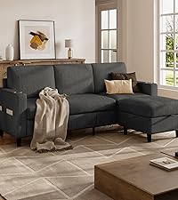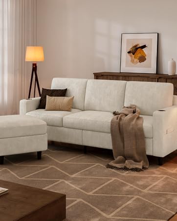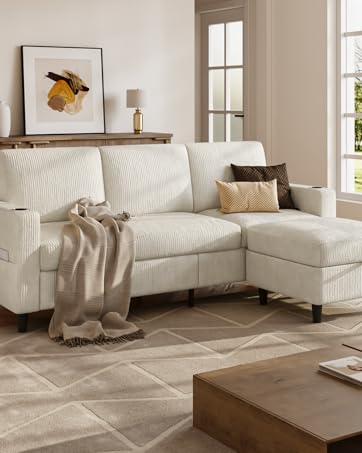 Modern L-Shaped Sectional Sofa with Storage Ottoman, 3-Seater Convertible Couch for Small Spaces, Light Grey Living Room Couch with Cup Holders for Apartment & Office